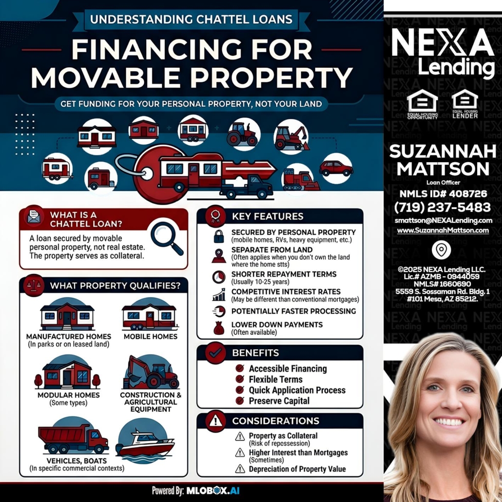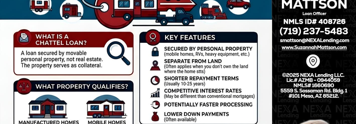 Hi, my name is Suzannah Mattson. I’m a Loan Officer offering personalized mortgage solutions, fast customized quotes, great rates and service with integrity. If you’re interested in learning more about the Chattel loan or any other, just let me know and I’ll walk you through your options.