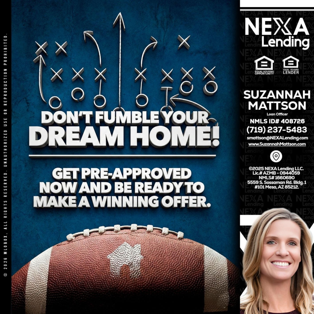 Hi, my name is Suzannah Mattson. I’m a Loan Officer with NEXA Lending LLC., offering personalized mortgage solutions, fast customized quotes, great rates and service with integrity.