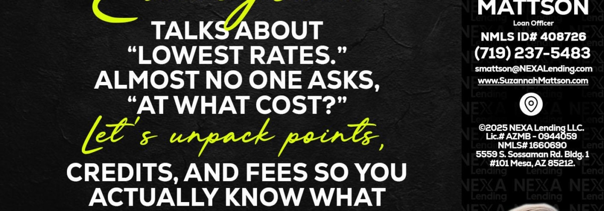Hi, my name is Suzannah Mattson. I’m a Loan Officer with NEXA Mortgage LLC., offering personalized mortgage solutions, fast customized quotes, great rates and service with integrity.
