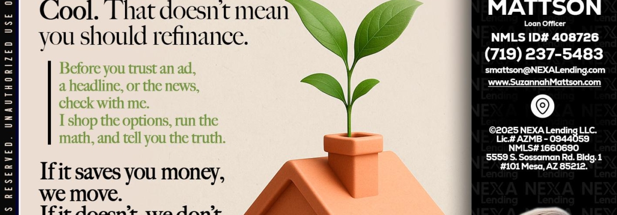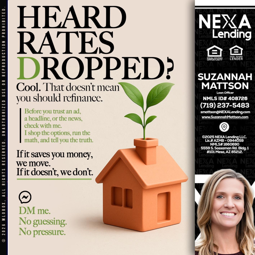 Hi, my name is Suzannah Mattson. I’m a Loan Officer with NEXA Lending LLC., offering personalized mortgage solutions, fast customized quotes, great rates and service with integrity.