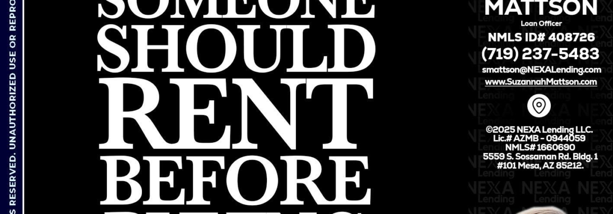 Hi, my name is Suzannah Mattson. I’m a Loan Officer with NEXA Mortgage LLC., offering personalized mortgage solutions, fast customized quotes, great rates and service with integrity.