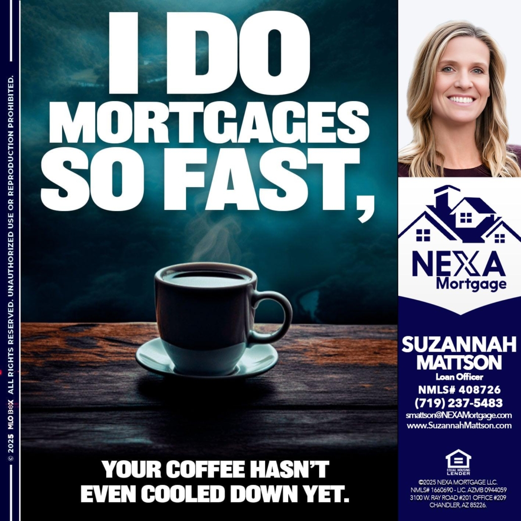 Hi, my name is Suzannah Mattson. I’m a Loan Officer with NEXA Mortgage LLC., offering personalized mortgage solutions, fast customized quotes, great rates and service with integrity.