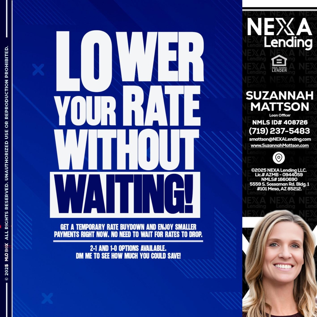 Hi, my name is Suzannah Mattson. I’m a Loan Officer with NEXA Mortgage LLC., offering personalized mortgage solutions, fast customized quotes, great rates and service with integrity.
