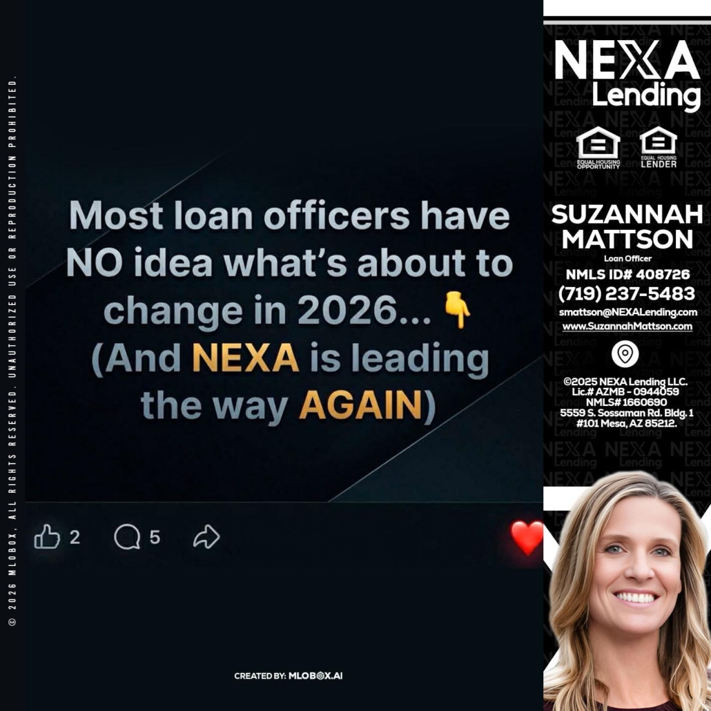 most loan officers - Suzannah Mattson -Brokering Loan OfficerHi, my name is Suzannah Mattson. I’m a Loan Officer with NEXA Lending LLC., offering personalized mortgage solutions, fast customized quotes, great rates and service with integrity.