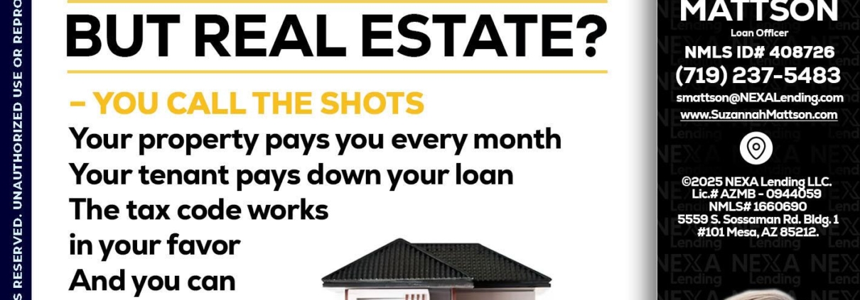 Hi, my name is Suzannah Mattson. I’m a Loan Officer with NEXA Mortgage LLC., offering personalized mortgage solutions, fast customized quotes, great rates and service with integrity.