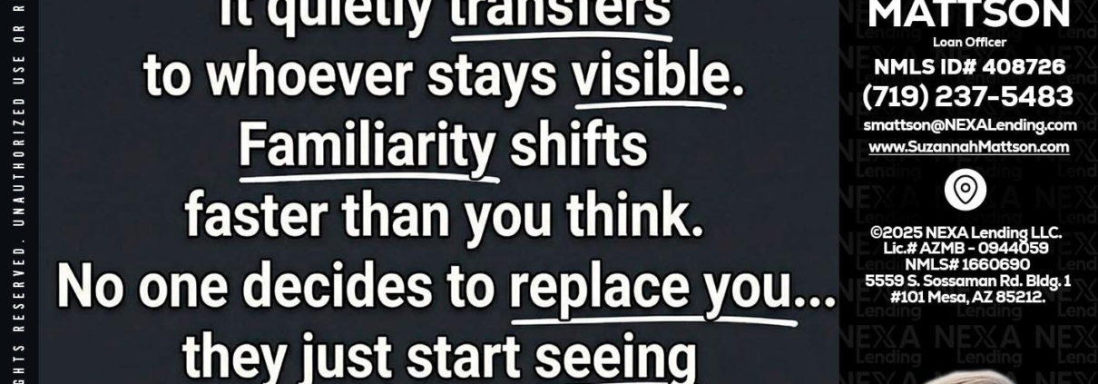 Hi, my name is Suzannah Mattson. I’m a Loan Officer with NEXA Lending LLC., offering personalized mortgage solutions, fast customized quotes, great rates and service with integrity.