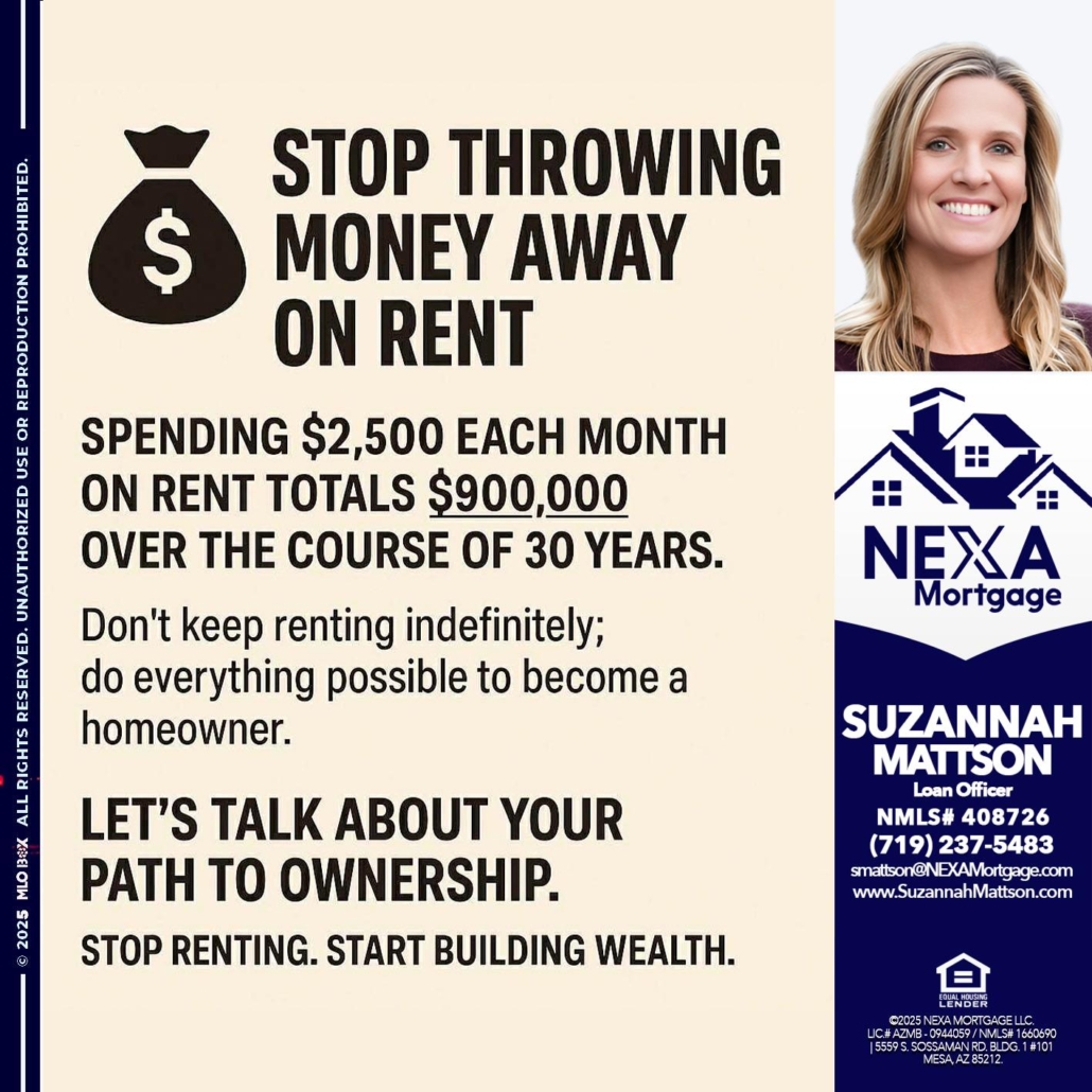 Hi, my name is Suzannah Mattson. I’m a Loan Officer with NEXA Mortgage LLC., offering personalized mortgage solutions, fast customized quotes, great rates and service with integrity.