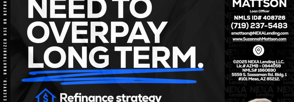 Hi, my name is Suzannah Mattson. I’m a Loan Officer with NEXA Lending LLC., offering personalized mortgage solutions, fast customized quotes, great rates and service with integrity.