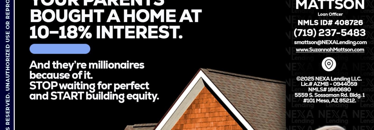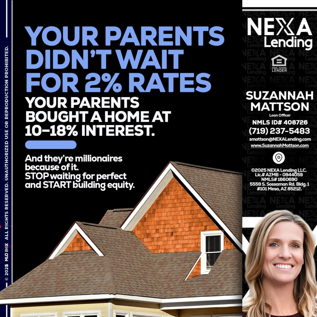 Hi, my name is Suzannah Mattson. I’m a Loan Officer with NEXA Mortgage LLC., offering personalized mortgage solutions, fast customized quotes, great rates and service with integrity.